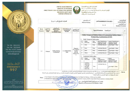 Emirates Glass LLC Becomes The First Glass Processing Company In The UAE To Be Registered With Dubai Civil Defence For Its Safety Glazing Products